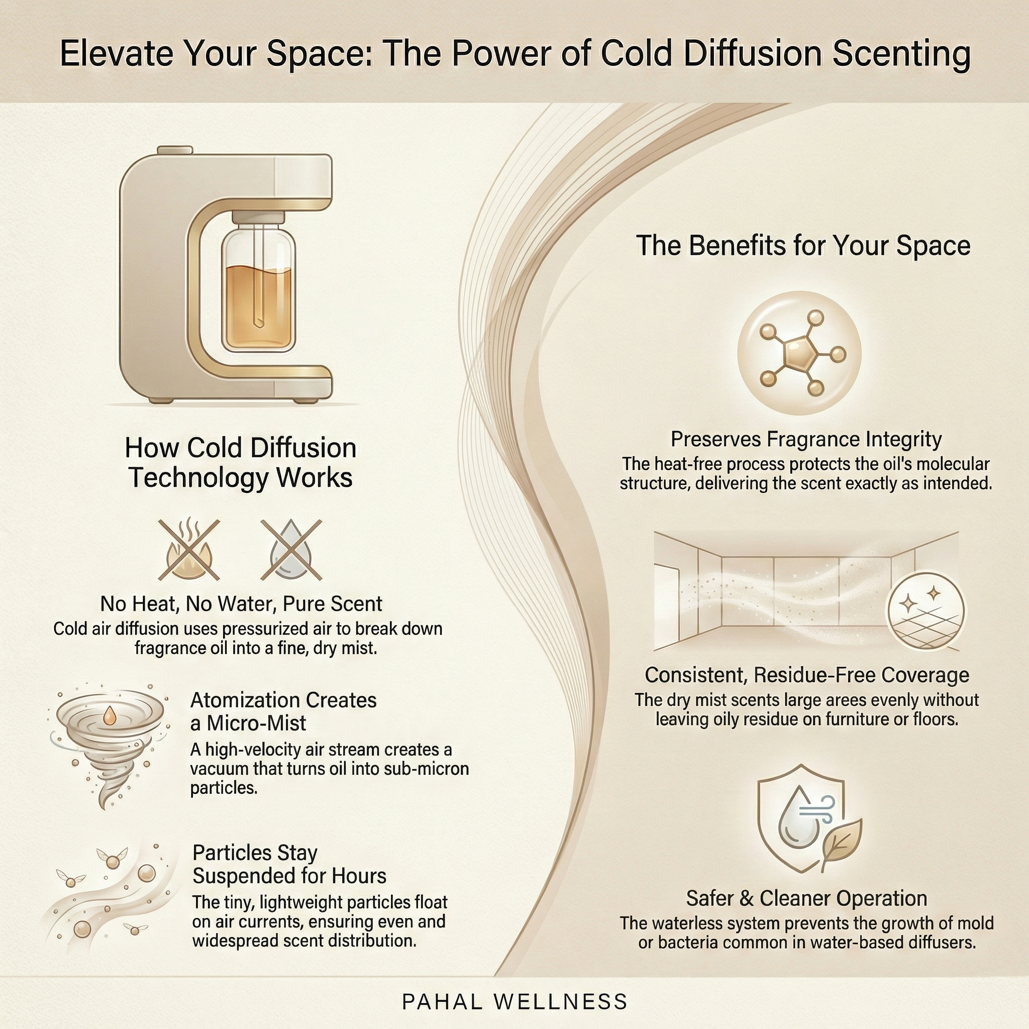 • High Efficiency: Uses nebulizing technology to disperse fragrance evenly without water.