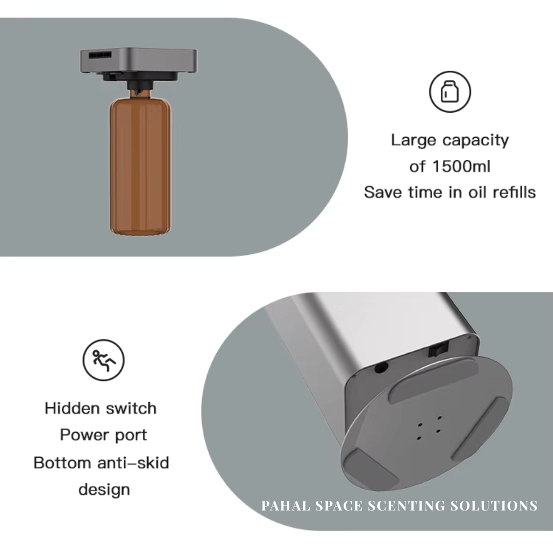 All our scenting machines employ cold-diffusion technology(Nebulising), no need to add water or as this launches the fragrance in the air as small as 1-10 microns hence you get the pure fragrance without the heat over a large area(8000-10,000 sq ft). Cold diffusion preserves the whole scent pyramid and is residue free, giving you the best aromatic experience.