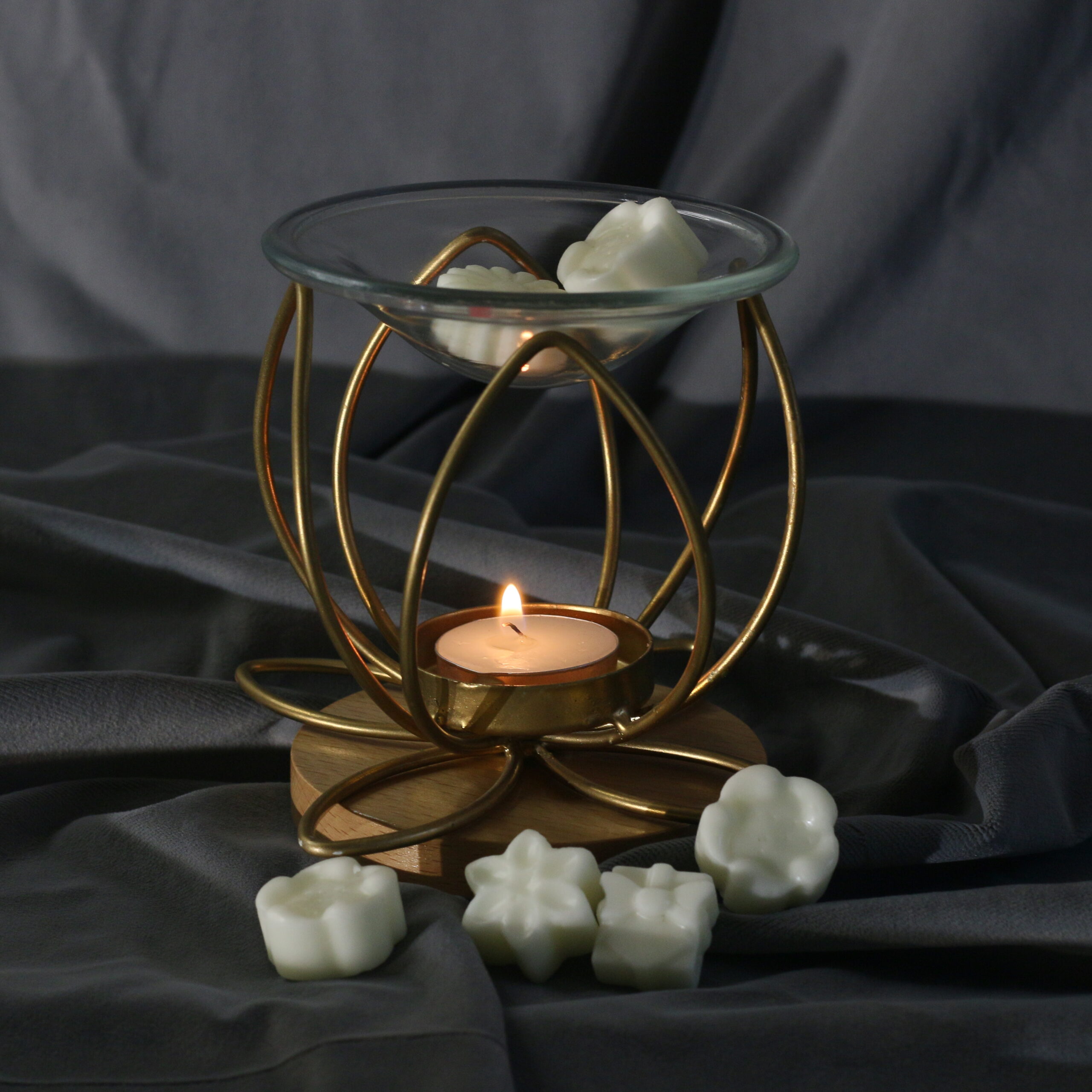 Its durable golden metal wire body ensures both elegance and functionality, making it the perfect addition to any modern home or workspace. Simply place a tea-light candle below and your chosen aroma blend above—the gentle heat slowly releases the fragrance, creating a serene ambiance in minutes.
